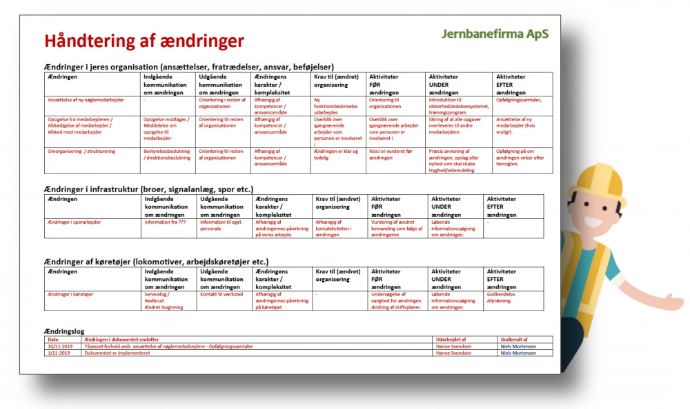 I skal altid huske at dokumentere og gemme alle jeres vurderinger af farer, risici og barrierer for ændringerne. Det gælder både for vurderinger af ændringer, jernbanesikkerheden og vurdering af en ændrings signifikans.