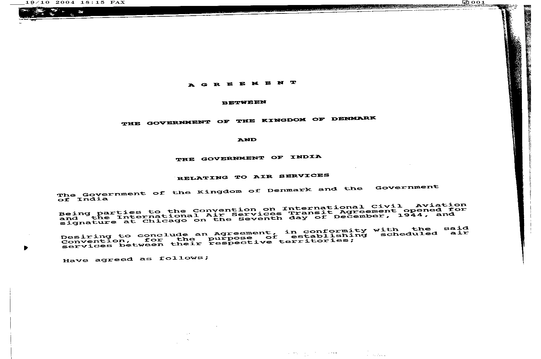 Luftfartsaftale mellem Danmark og Indien, 1995.