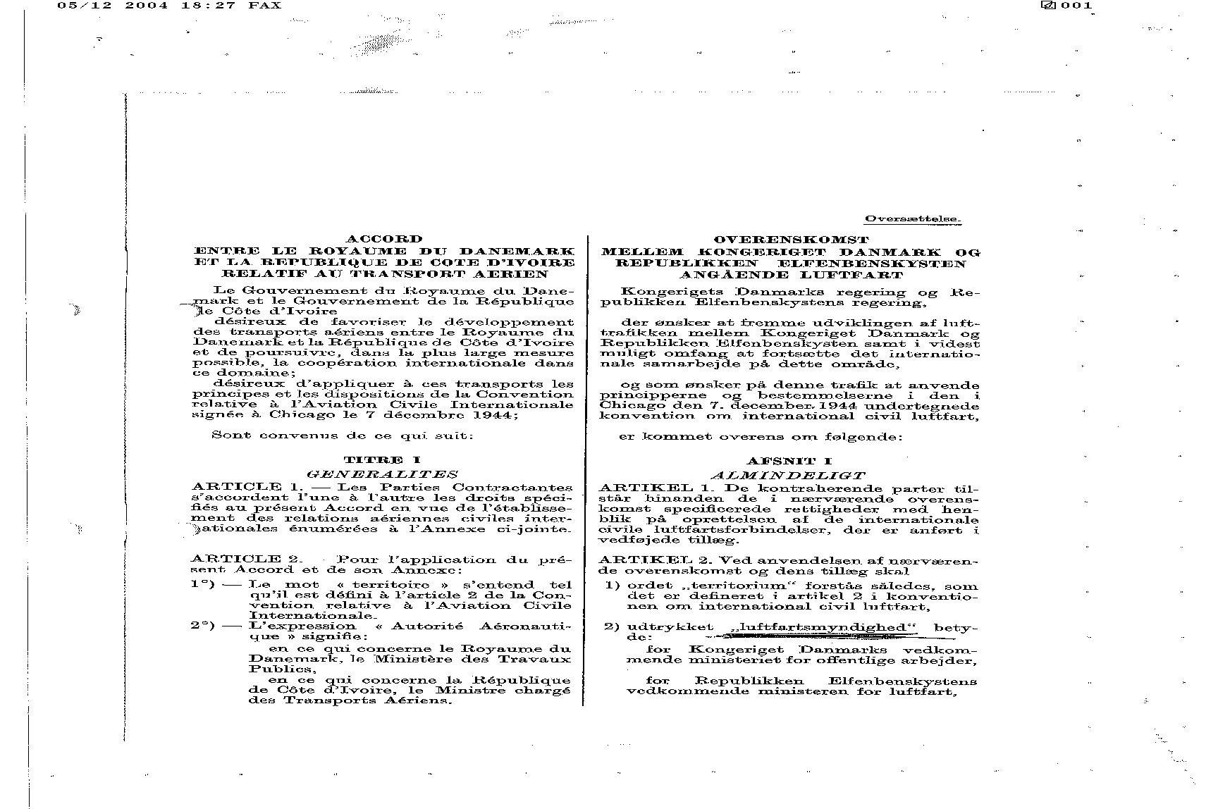Luftfartsaftale mellem Danmark og Elfenbenskysten, 1966.