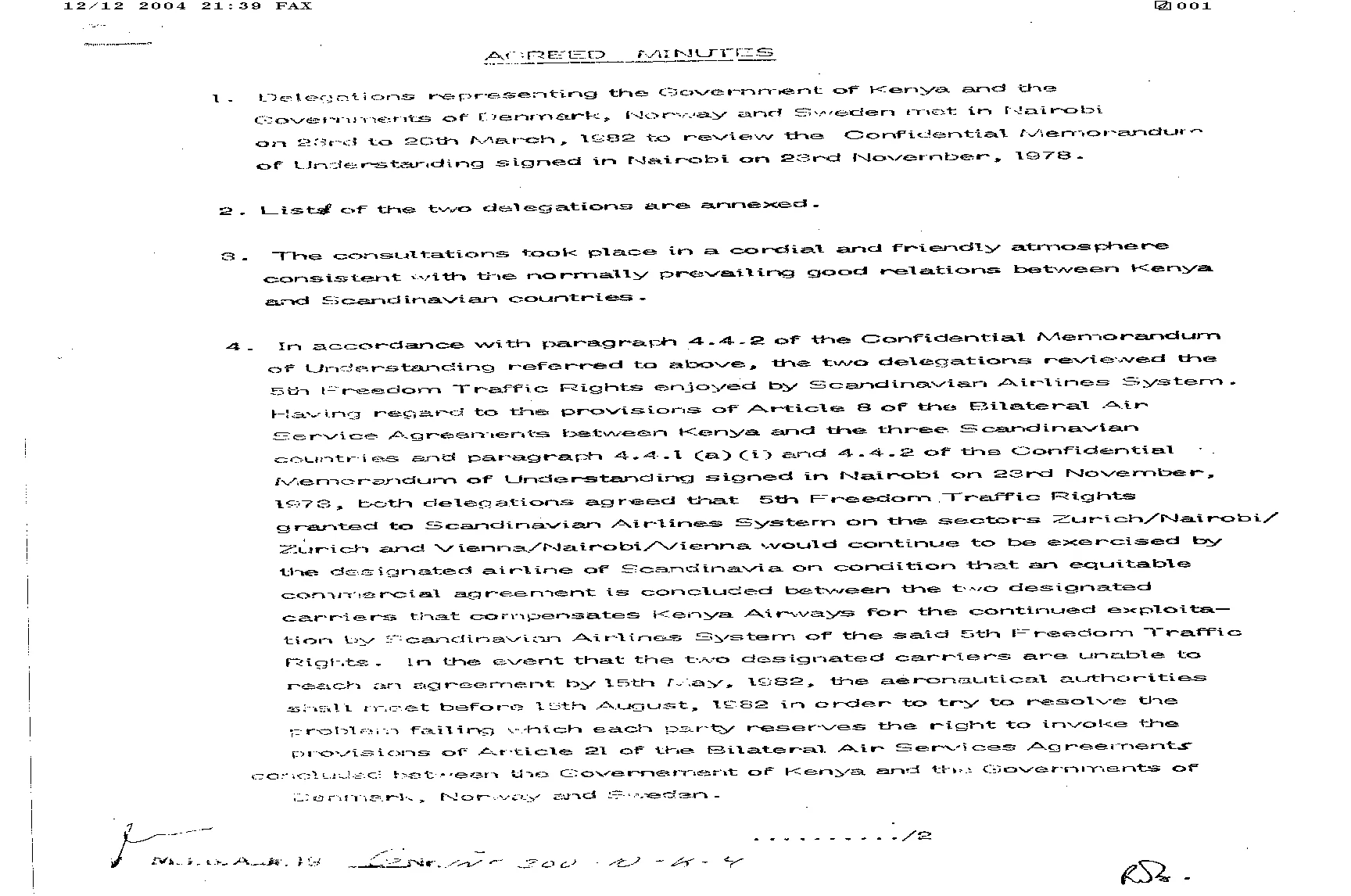 Referat fra luftfartsforhandlinger mellem Danmark og Kenya, 1982.