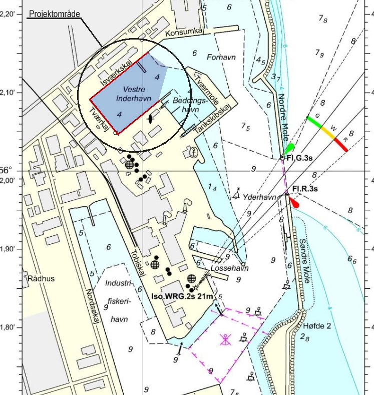 Trafik,- og Bygge- og Boligstyrelsen skal screene projektet for VVM med henblik på en vurdering af, hvorvidt projektet er VVM-pligtigt i medfør af bekendtgørelse nr. 450 af 8. maj 2017 om vurdering af virkning på miljøet (VVM) af projekter vedrørende erhvervshavne og Københavns Havn samt om administration af internationale naturbeskyttelsesområder og beskyttelse af visse arter for så vidt angår anlæg og udvidelse af havne.