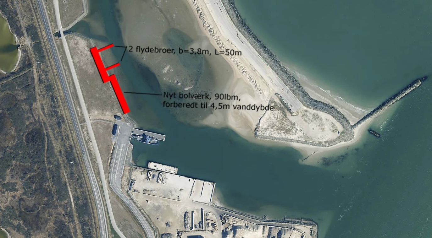 Trafikstyrelsen har den 29.10.2021 modtaget ansøgning fra Thyborøn Havn om etablering af et bolværk udført med spuns, to flydebroer samt en uddybning i samme område.