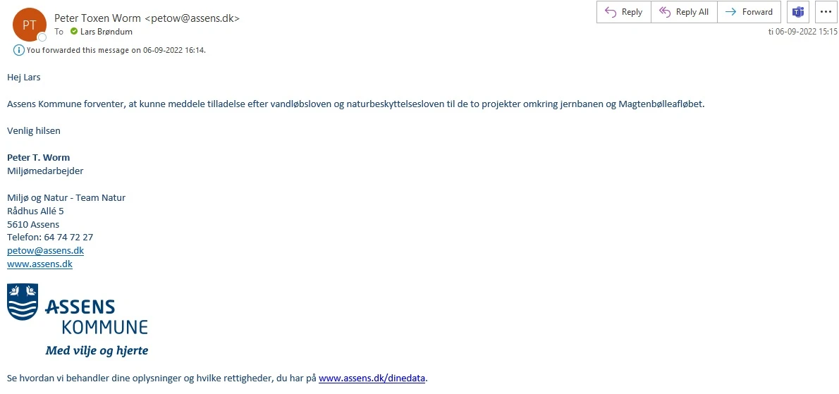 Eventuelle bemærkninger til projektet bedes indsendt senest den 20/10-2022 til vvm@tbst.dk cc tmsj@trafikstyrelsen.dk med henvisning til journalnummer 2022-094192.